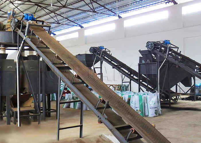 • After cooling, the particles enter a double-layer vibrating screen. The upper screen (6mm) separates oversized lumps (approximately 3%), which are then sent to a pulverizer for re-pulverization. The lower screen (2mm) separates fine powder (approximately 5%), which is then returned to the mixer for re-granulation.